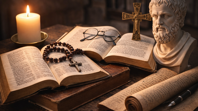Desde os primeiros séculos, pensadores cristãos dialogam com a filosofia clássica para expressar de modo mais preciso o conteúdo da revelação. Assim, a teologia não surgiu isolada, mas em constante interação com o pensamento racional. Portanto, a fé não substitui a razão, mas a eleva e a orienta. Quando integradas, ambas permitem ao cristão compreender com maior profundidade o mistério que professa.